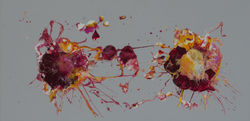 Wild Flowers is about finding the sweet spot between deliberate and spontaneous. Colorful compositions of delicate flowers with wild tentacles, leaves and blobs are created by thoughtful choices of color, fluidity and layering of paint. Breaths and puffs of air give rise to flow, eruptions or explosions which spontaneously reveal layers, marbles, cells and depth. While many of the (now destroyed) experiments looked contrived, too impulsive and/or formless, a few creations merge delightful combinations of deliberate, delicate and spontaneous forms. They may resemble separating cells, fighting flowers, squashed strawberries or simply beautiful wild flowers balanced in their colors and beauty. A resemblance with life can be imagined where a combination of conscious choices and structure as well as openness to flow and freedom may result in delicate beauty and fulfillment.